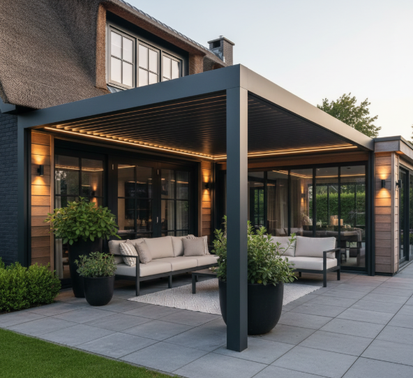 De ideale locatie voor een lamellen overkapping hangt af van zonligging, windrichting en hoe je de buitenruimte wilt gebruiken. Kies bij voorkeur een plek met ochtend- of middagzon, zodat je onder de overkapping lekker zit, zonder oververhit te raken.